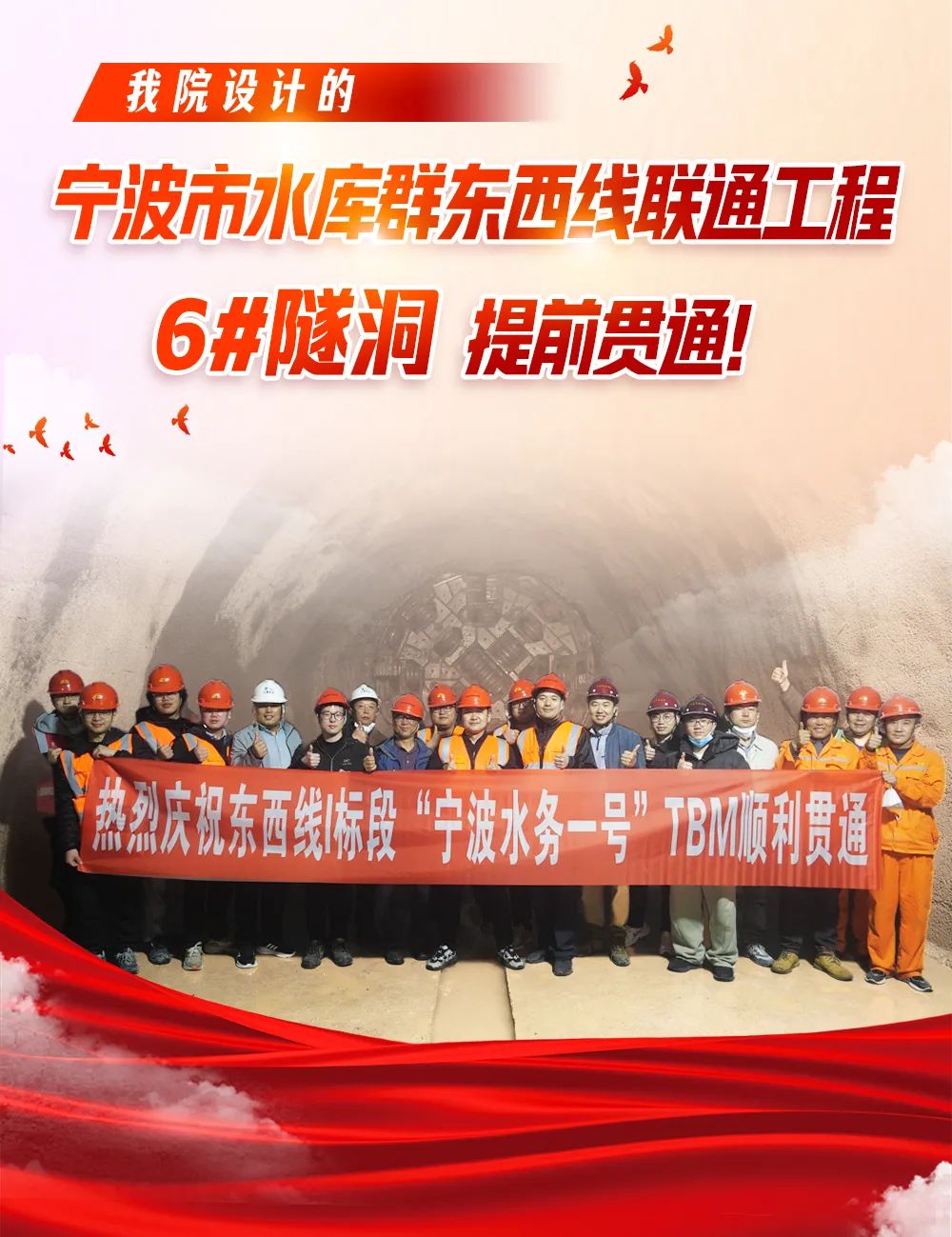 我院設(shè)計的寧波市水庫群東西線聯(lián)通工程6#隧洞提前貫通!