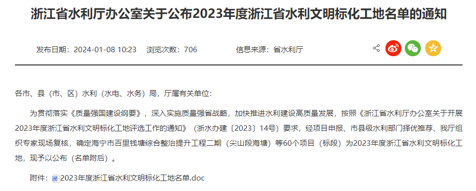 發(fā)布日期:2024.01.15 近日,經(jīng)浙江省水利廳2023年度浙江省水利文明標(biāo)化工地名單公布,我院承擔(dān)全過(guò)程工程咨詢(xún)的寧波市江北區(qū)小西壩泵站工程喜獲“浙江省文明標(biāo)化工地”稱(chēng)號(hào),成為寧波市水利行業(yè)的標(biāo)桿... -