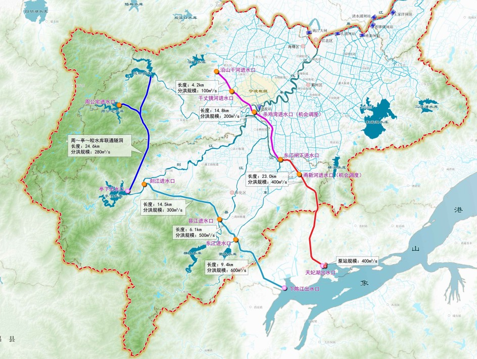 甬江流域南排通道工程項目建議書:該工程為《甬江流域防洪治澇規(guī)劃(2021-2035 年)》確定的甬江流域最大的分洪工程,工程擬設置東、西兩條分洪線路,總長約96.6公里,總規(guī)模1000立方米每秒。工程實施后,與規(guī)劃內(nèi)工程聯(lián)合運用,將有效提升流域和區(qū)域防洪排澇能力。