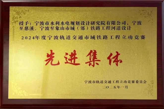 近日,在寧波軌道交通市域鐵路工程2024年度立功競賽表彰大會暨市域鐵路公司2025年生產(chǎn)工作會議上,我院憑借在寧波至慈溪、寧波至象山市域(郊)鐵路工程河道設(shè)計中的出色表現(xiàn),獲得第四競賽組第一名,授予“2024年度寧波軌道交通市域鐵路工程立功競賽先進(jìn)集體”榮譽(yù)稱號。