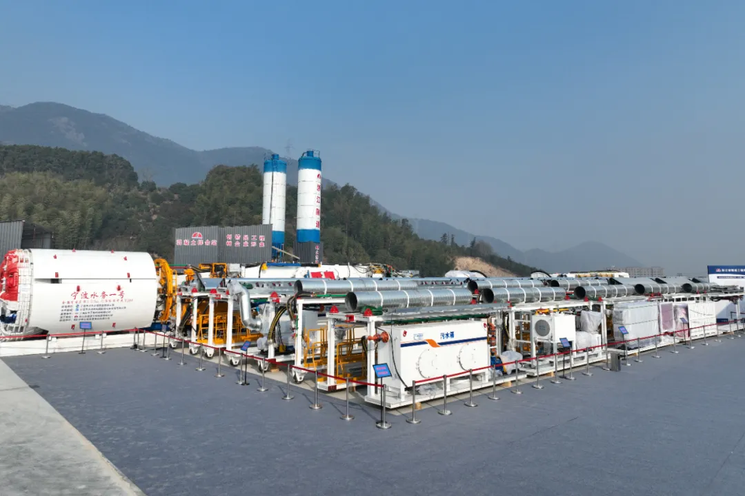 作為省、市重點工程建設項目,寧波市水庫群東西線聯(lián)通工程位于寧波市奉化區(qū)南部山區(qū),工程設計輸水規(guī)模為40萬m³/d。建設內(nèi)容包括一條干線、兩條支線,以及沿線調(diào)節(jié)站及各類閥井,全線總長約40.54km。6#隧洞作為本工程重要節(jié)點性分部工程,全長約12.28km,采用鉆爆法+TBM(全斷面硬巖掘進機)進行隧洞開挖。值得一提的是,本次所采用的敞開式TBM設備“寧波水務一號”,其開挖直徑4.03米,整機長度約225米,掘進長度10.87km,為寧波水利行業(yè)首次應用。