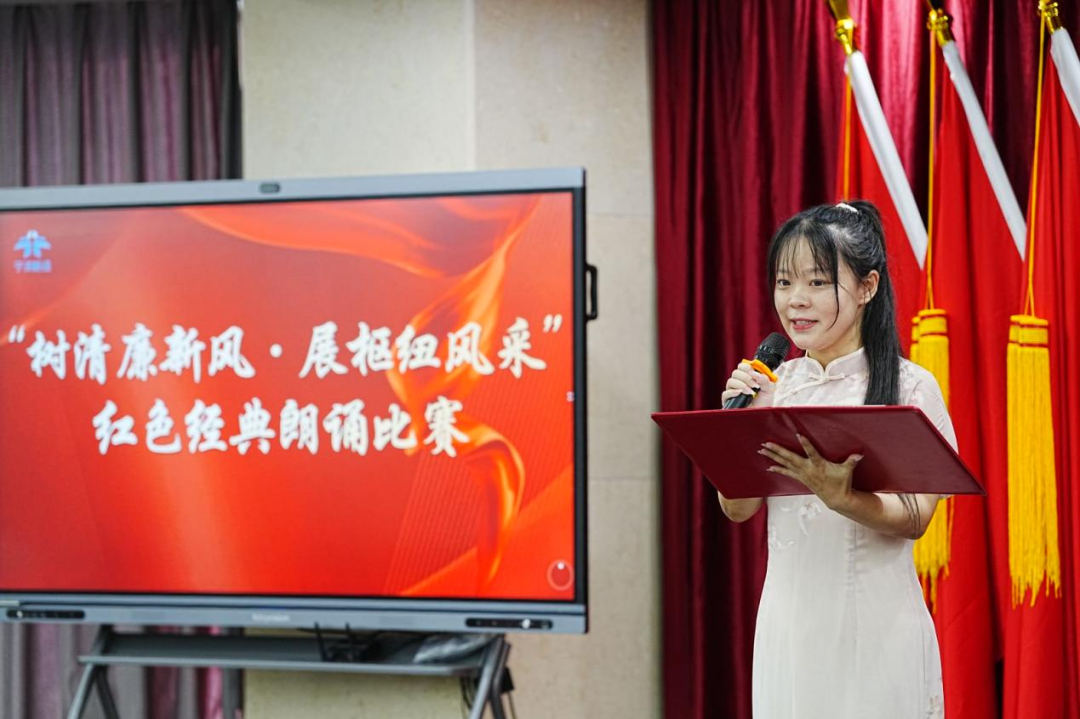 隨后的“樹清廉新風(fēng)·展樞紐風(fēng)采”紅色經(jīng)典朗誦比賽中,匯聚了來自樞紐公司與參建單位的25名選手。我院選送的作品緊扣“樹清廉新風(fēng)”主題,由工程院唐楚珺與規(guī)劃院李小杰兩位青年職工擔(dān)綱朗誦。備賽期間,二人利用業(yè)余時間精研稿件,雕琢細節(jié),并精心設(shè)計朗誦形式,反復(fù)演練,積極備戰(zhàn)。