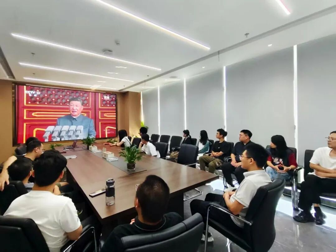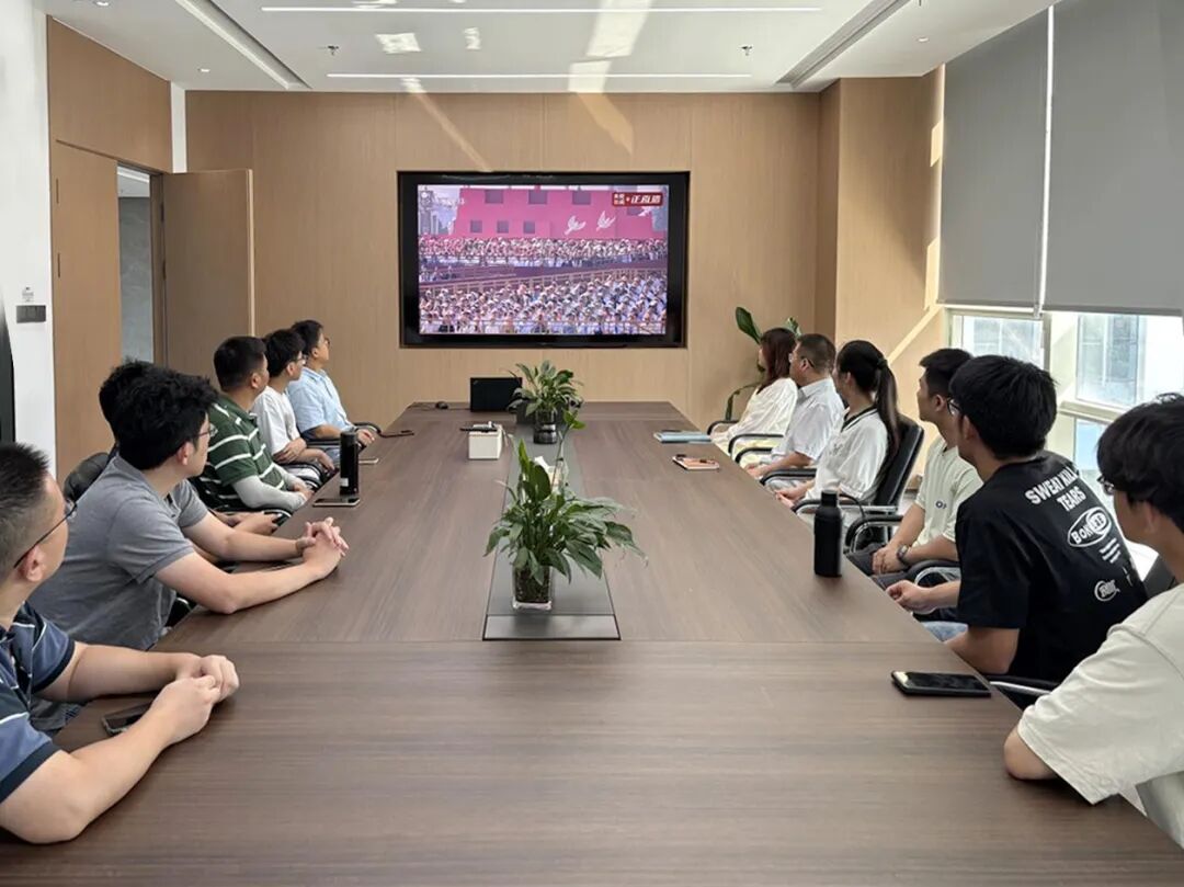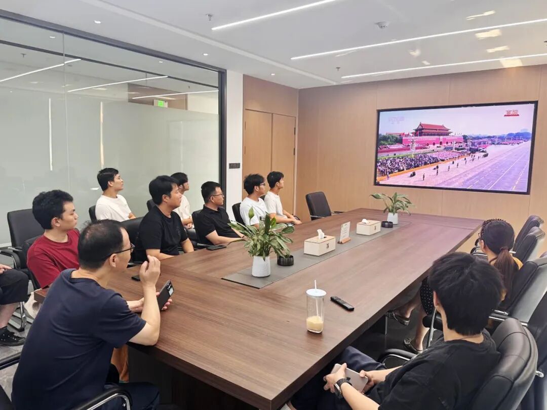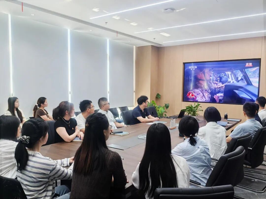 新大樓各層會議室現(xiàn)場氣氛莊重,全體黨員及職工認真聆聽習近平主席重要講話。當閱兵儀式開始時,大家不時為受閱部隊的雄壯陣容和先進裝備贊嘆鼓掌,由衷為祖國日益強大的綜合國力與國防力量感到自豪。觀看結(jié)束后,黨員們深受震撼、心潮澎湃,一致認為這場閱兵不僅展示了國威軍威,更彰顯了中華民族百折不撓、團結(jié)奮進的偉大精神。