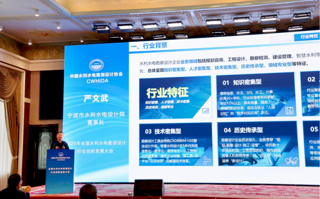 我院董事長、院長嚴文武在大會上作了《大模型賦能水利水電勘察設計企業(yè)數字化轉型》專題報告,系統(tǒng)分享了我院在人工智能大模型技術驅動下,推進企業(yè)數字化轉型的實踐路徑與成果經驗。