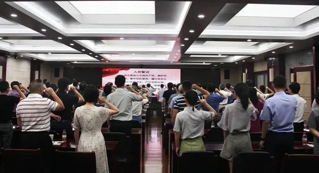 隨著雄壯激昂的《義勇軍進行曲》歌聲響起,市水利局迎接建黨99周年紀念大會正式拉開帷幕。“我志愿加入中國共產黨……” 全體黨員昂首挺胸,高舉右手,一起重溫入黨的錚錚誓言。會議現(xiàn)場,宣誓儀式氣氛莊嚴。
