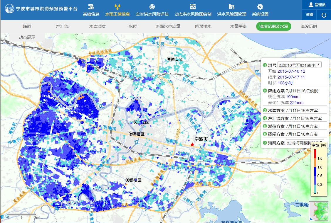 圍繞城市防汛工作的特點,通過構(gòu)建城市洪澇計算及風(fēng)險分析數(shù)學(xué)模型,結(jié)合物聯(lián)網(wǎng)、大數(shù)據(jù)、人工智能等技術(shù),能夠提前6~12小時預(yù)判洪澇災(zāi)害的發(fā)生區(qū)域、時間和風(fēng)險程度,實現(xiàn)對洪澇災(zāi)害“預(yù)報預(yù)警、未雨綢繆、主動應(yīng)對、減災(zāi)減損”。
