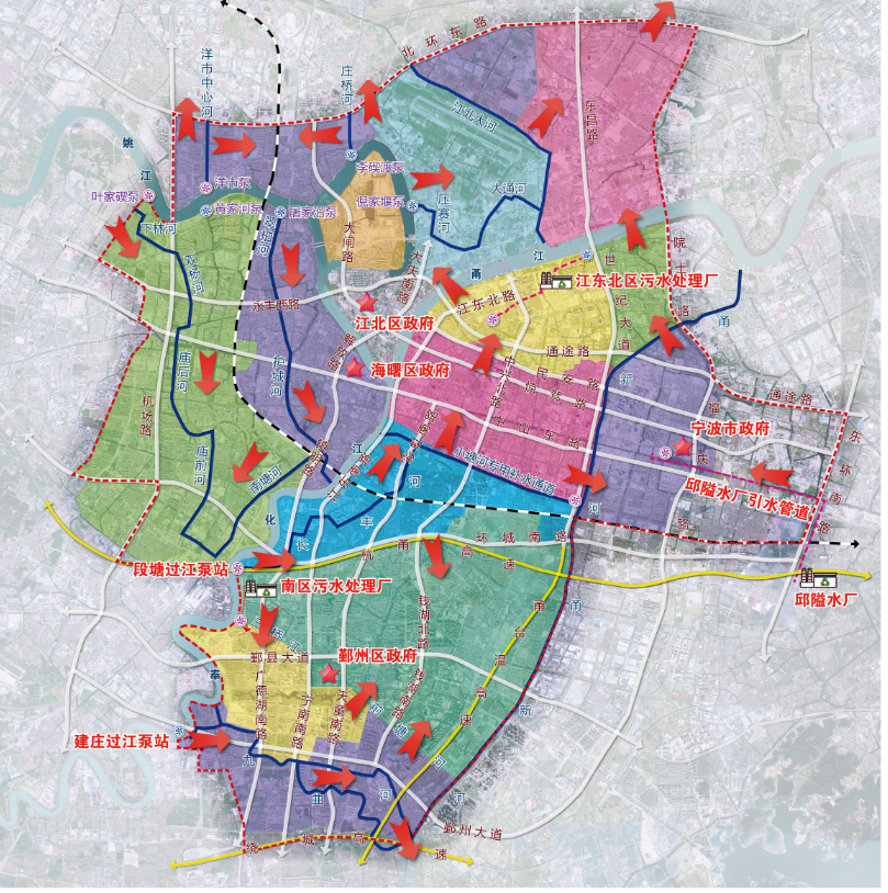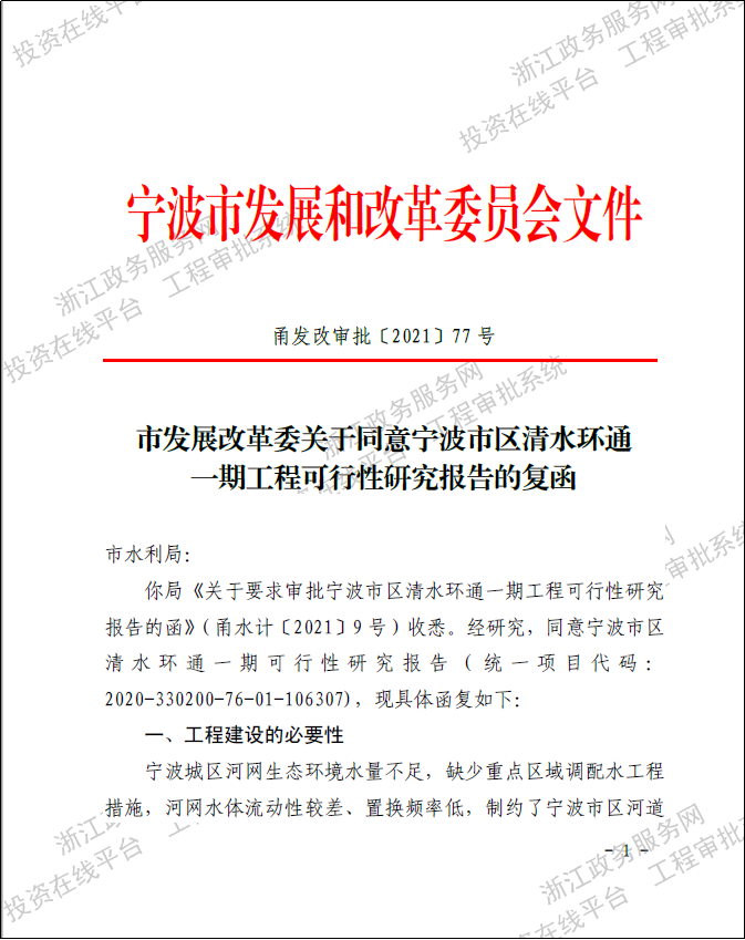 寧波市區(qū)清水環(huán)通一期工程西起機(jī)場(chǎng)高架、東至福慶路,北起北環(huán)高架,南至鄞州大道,面積合計(jì)約146km2,是寧波市區(qū)重要的河網(wǎng)引配水工程,亦是緩解老城內(nèi)澇壓力的有力舉措。為提升河網(wǎng)環(huán)境用水量、促進(jìn)水系互聯(lián)互通、改善水體流態(tài),寧波市區(qū)清水環(huán)通一期工程創(chuàng)新性的引入“精準(zhǔn)補(bǔ)水、高速水路”的計(jì)理念,切實(shí)解決了寧波城區(qū)現(xiàn)狀大水漫灌的河網(wǎng)調(diào)水模式下調(diào)水效率低下、補(bǔ)水針對(duì)性不強(qiáng)等痛點(diǎn)、難點(diǎn)問題。該工程可研報(bào)告于2021年5月獲寧波市發(fā)展和改革委員會(huì)批復(fù)。