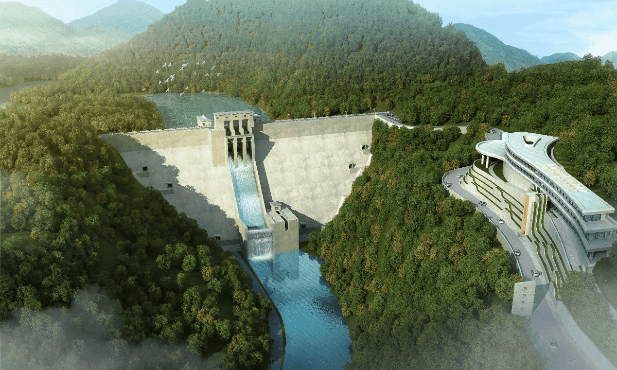 工程是一座以防洪、供水為主,兼顧生態(tài)、灌溉、發(fā)電等綜合利用的水利樞紐工程。主要由攔河壩、泄水建筑物、發(fā)電引水建筑物、發(fā)電廠房及升壓站和輸水系統(tǒng)等組成。壩址以上集水面積54.2km2,水庫校核洪水位269.98m,水庫總庫容3542萬m3,防洪庫容1002萬m3,水電站裝機(jī)容量1.8MW。