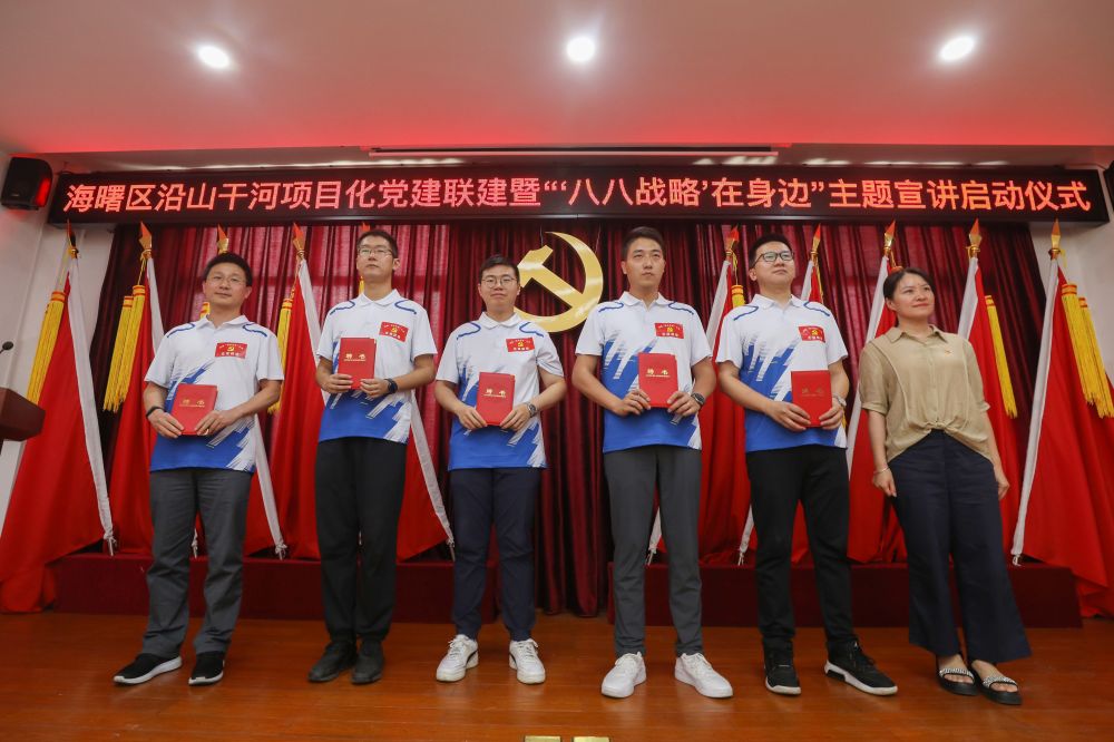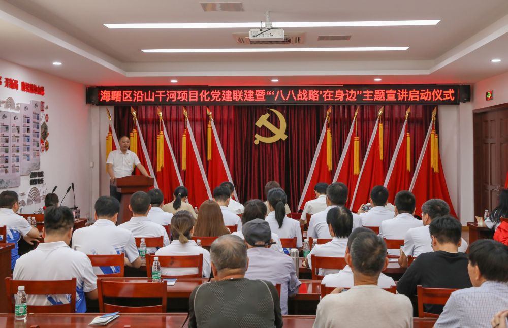 近日,海曙區(qū)直機關工委和區(qū)水利局以“五最黨建”為引領,在集士港鎮(zhèn)岳童村文化禮堂舉行沿山干河項目化黨建聯(lián)建暨“‘八八戰(zhàn)略’在身邊”主題宣講啟動儀式,我院作為沿山干河項目參建單位、活動的承辦方參與了啟動儀式。我院黨總支書記、副院長王洪霞,工程設計項目組及青年黨員代表十余人參加了上述活動。