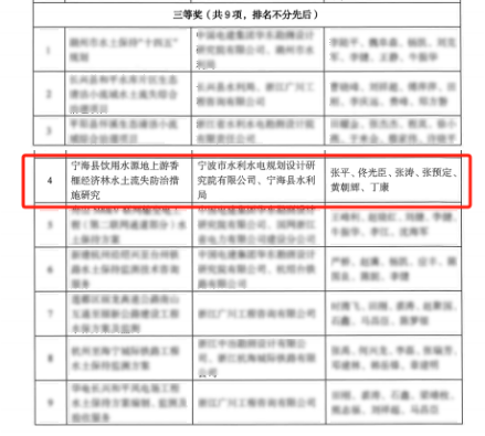 近日,浙江省水土保持學(xué)會(huì)第三屆優(yōu)秀設(shè)計(jì)評(píng)選獲獎(jiǎng)名單出爐,15個(gè)獲獎(jiǎng)工程中,我院成功鎖定一席!此次我院受寧??h水利局委托開展實(shí)施的寧??h飲用水源地上游香榧經(jīng)濟(jì)林水土流失防治措施研究榮獲三等獎(jiǎng)。該獎(jiǎng)項(xiàng)由浙江省水土保持學(xué)會(huì)設(shè)立,每兩年評(píng)審一次,通過對(duì)水土保持規(guī)劃設(shè)計(jì)領(lǐng)域中取得優(yōu)異成績的集體和個(gè)人進(jìn)行表彰,從而推動(dòng)全省水土保持行業(yè)的發(fā)展。