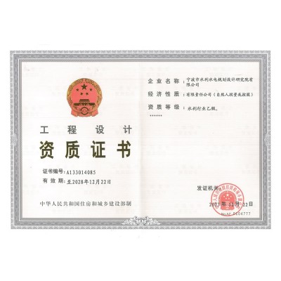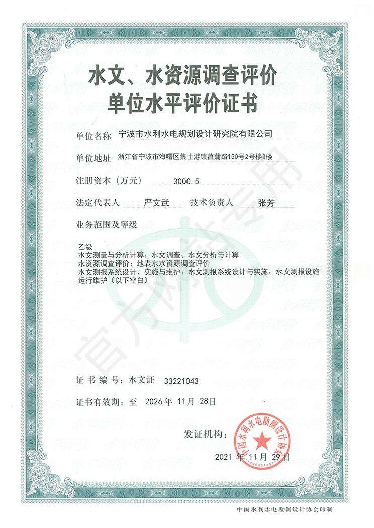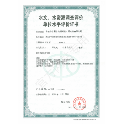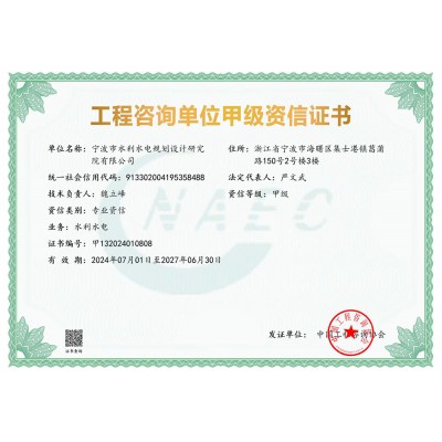 寧波院具有水利水電工程設(shè)計(jì)、工程勘察、工程咨詢、水土保持、水資源論證等多項(xiàng)資質(zhì)。承擔(dān)中小河流域規(guī)劃、水庫、河道整治、灘涂圍墾等工程的勘察、設(shè)計(jì)、咨詢、總承包業(yè)務(wù),以及各領(lǐng)域建設(shè)項(xiàng)目的防洪評價(jià)、水資源論證、水土保持方案編制、水土保持監(jiān)測、計(jì)算機(jī)行業(yè)CMMI 3級認(rèn)證、知識(shí)產(chǎn)權(quán)管理體系認(rèn)證等。
